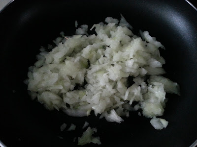 1. - Primero haremos un sofrito con la cebolla muy picadita , yo la piqué con la picadora, con un poco de aceite.