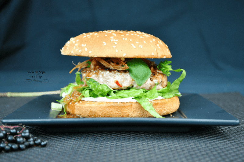 Yo en este caso he utilizado carne de cerdo y aromatizado con productos asiáticos. Esta hamburguesa nos traslada sin duda a Tailandia.