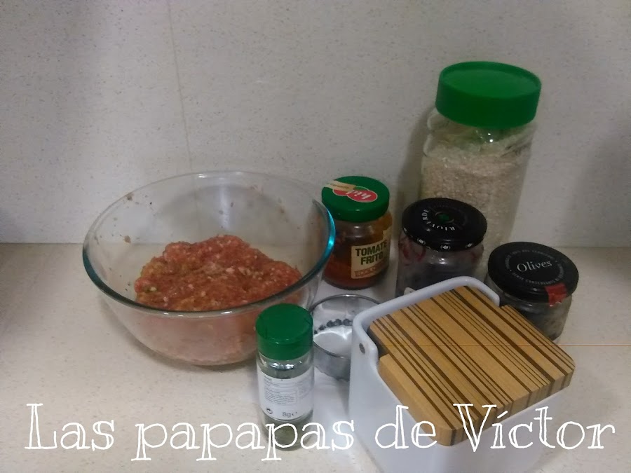 Mezclais los ingredientes para las hamburguesas, dejais reposar en la nevera mínimo una hora tapado con film