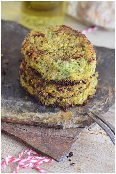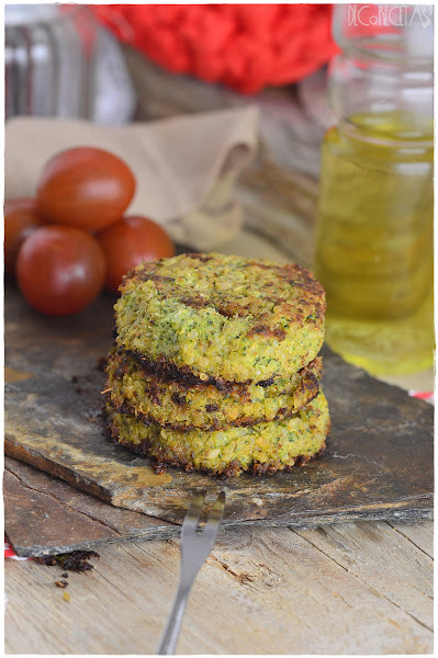 La quinoa (100gr) la aclare debajo del grifo durante unas cuantas veces y la cocino como si se tratase de un arroz añadiendo el doble de agua que de quinoa ( 200gr), dejándola 15 minutos a fuego bajo. El brécol ( 200gr), al vapor, y triture en la thermomix hasta que quedó con textura de cus-cus. Mezcle el brécol y la quinoa con un huevo y harina de arroz ( 3 cucharadas) hasta que obtuve la consistencia bastante manejable, y lleve a la plancha haciendo montoncitos que fui aplastando y dándoles forma, haciéndolos de los dos lados.