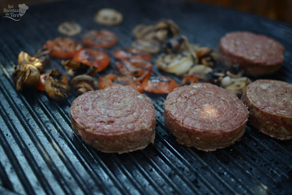 Dale forma a las las hamburguesas, salen cuatro de 175 gramos cada una de unos 8 centímetros de diámetro. un tamaño ideal, amasándolas en su forma característica, las pones a la parrilla cuando falten 5 minutos para que los vegetales estén listos, voltea la carne a los dos minutos y medio (5 minutos en total) para que quede al punto, si prefieres mas o menos hecha la dejas el tiempo que sea a tu gusto, con cuidado no se vaya a pasar de cocción. Sirve en panes tostados en la misma parrilla por un minuto, cuidando no se te vayan a quemar teniendo en cuenta que la parrilla está muy caliente, acompañando con los vegetales que has preparado junto con la carne, si quieres agrégale salsa ketchup y mostaza a tu gusto, verás que ricas!! Yo acompañé con un delicioso tinto de verano muy frío!! Uhmmmmm