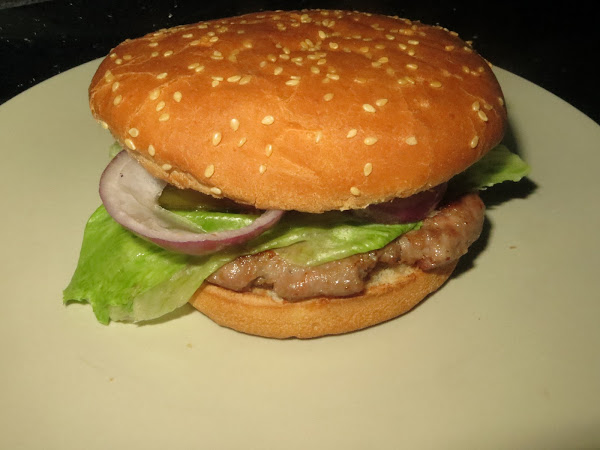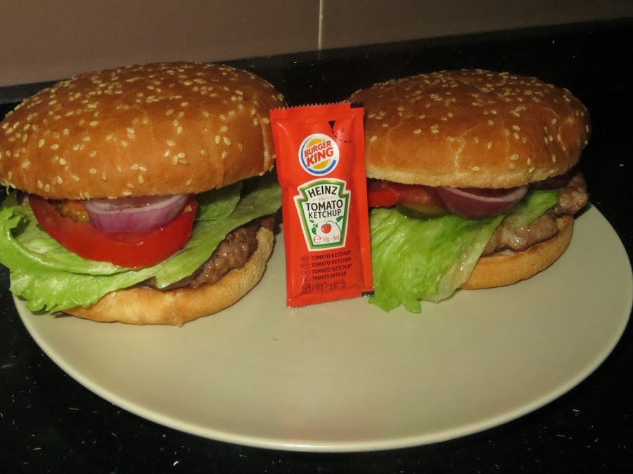 Una vez que tengáis preparada la carne, echáis un poco de aceite en la sartén y la freís, daros cuenta de que como será fina tampoco será necesario cocinarla durante mucho tiempo. Mientras tanto tostáis un poco el pan y le añadís un poco de mostaza y kétchup, cuando tengáis la hamburguesa la colocáis encima del pan, luego la lechuga, el pepinillo, las rodajas de tomate y las de cebolla. Untamos la rebanada del pan de arriba con mayonesa y kétchup y ya está lista para degustar.