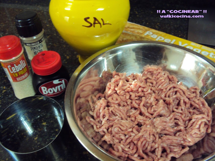 500 grs. de carne de ternera picada ( saldrán 9-10 hamburguesas )