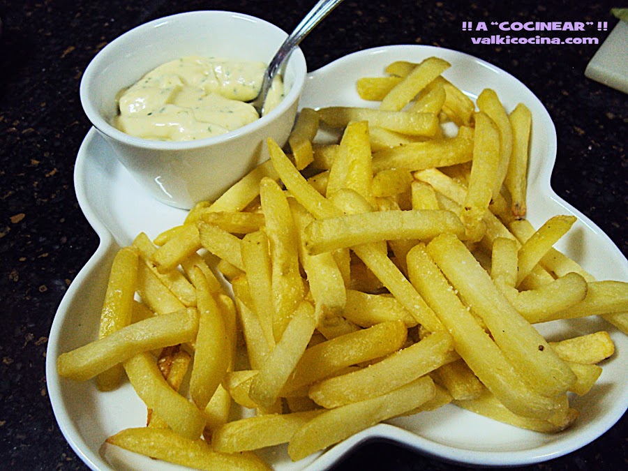 Y si quieres "rizar el rizo", acompaña con patatas prefritas en aceite de girasol, que si quieres puedes hacer al horno y así ahorrarte unas calorías.