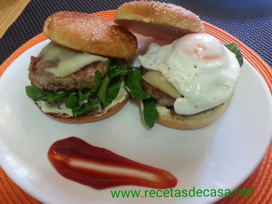 Como complementos hemos usado huevos, queso, mayonesa, ketchup y brotes de lechuga.