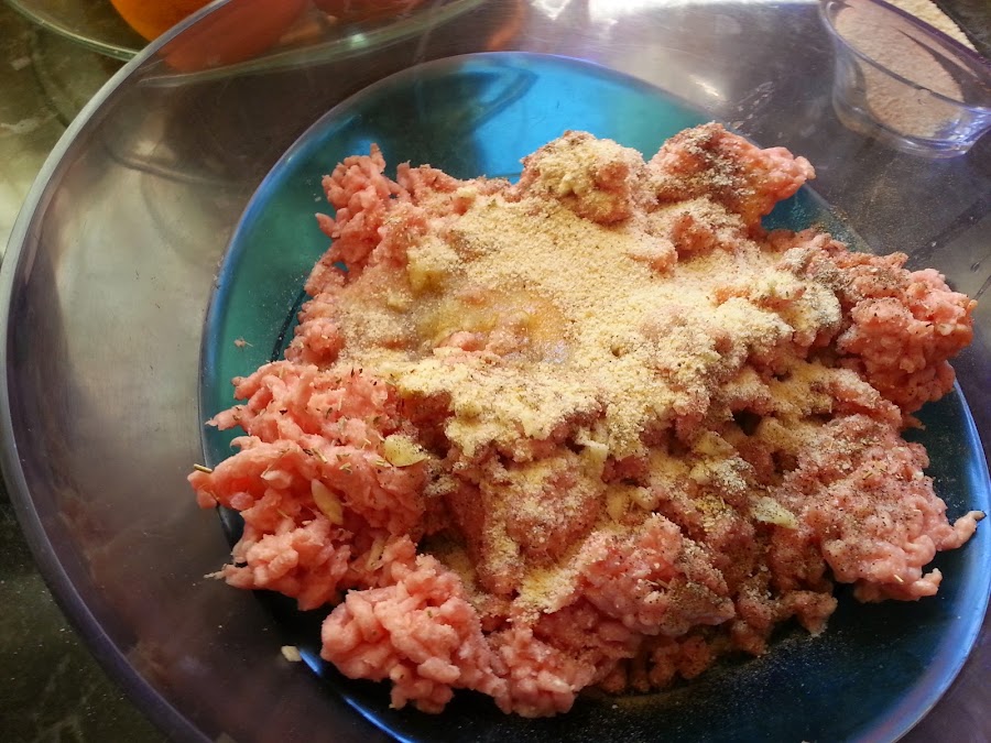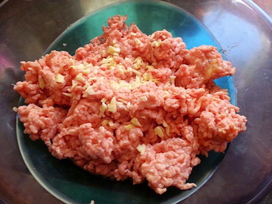 Ponemos la carne picada en un bol y deshacemos un poco.