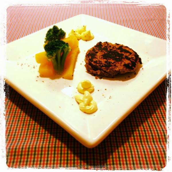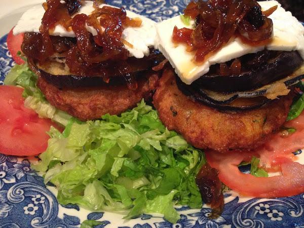 8.-Fue una de mis primeras recetas en el blog...Aquella noche me apetecía comer un poco de comida rápida, a mi manera. Una hamburguesa de pescado con cebolla carameliza, berenjenas rebosadas, queso tierno y una pequeña ensalada. Para ver todos los ingredientes como su elaboración: (Leer).