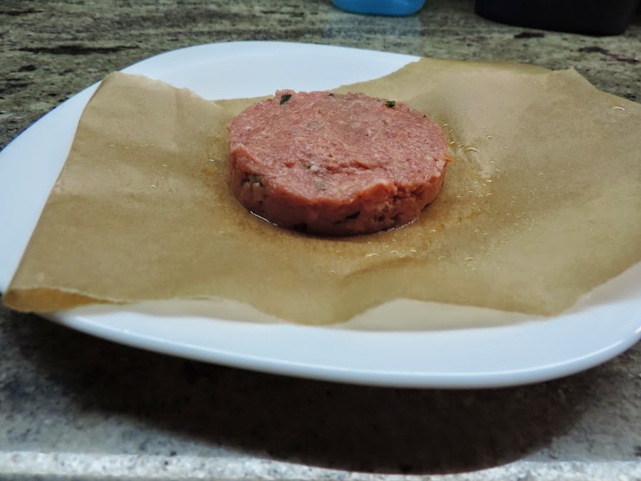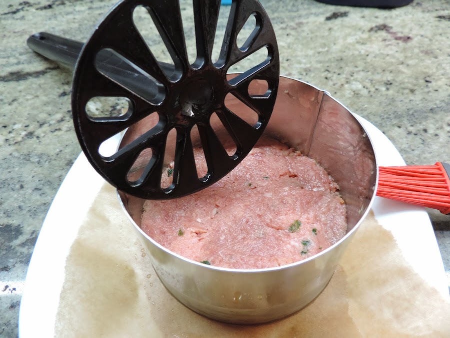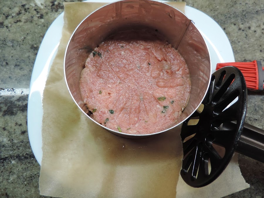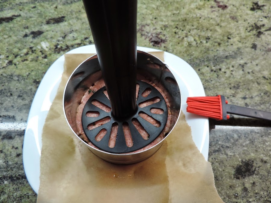 Con el tritura patatas lo aplastamos para que nos quede apretada y lisa la hamburguesa.