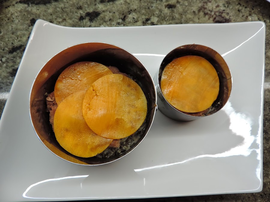 Unos aros de queso chedar, que los he cortado con el aro de emplatar.