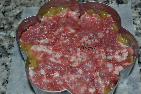 Y volvemos a poner otro poco de carne picada para cubrirla, aplastar bien con una cuchara para que quede bien prensada.