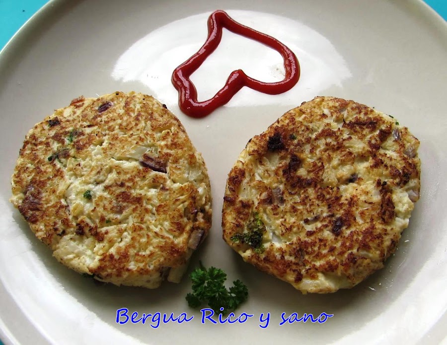 Coliflor, parmesano y cebolla. Las hamburguesas vegetales son una forma fantástica de disfrutar de la verdura hasta para los que dicen que no les gustan las verduras ;) Con estos ingredientes nos salen 7-8 hamburguesas.