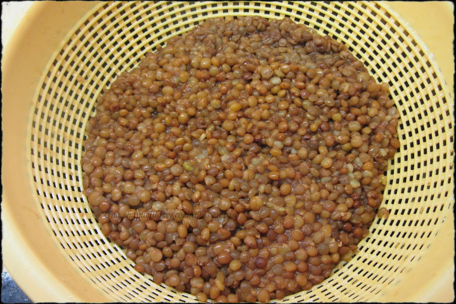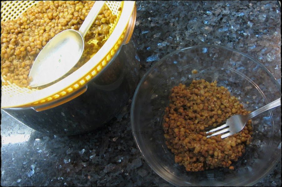 Una vez listas las lentejas, colarlas quitando bien el agua.