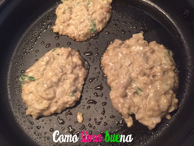 Agregar un chorrito de salsa de soja. Adicionar 3 cucharadas de harina, mezclar bien. Con la ayuda de una cuchara tomar una porción y llevar a dorar a una sartén