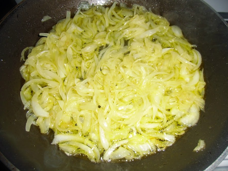 Salpimentamos y cocinamos lentamente durante al menos 20 minutos que la cebolla vaya cambiando de color.