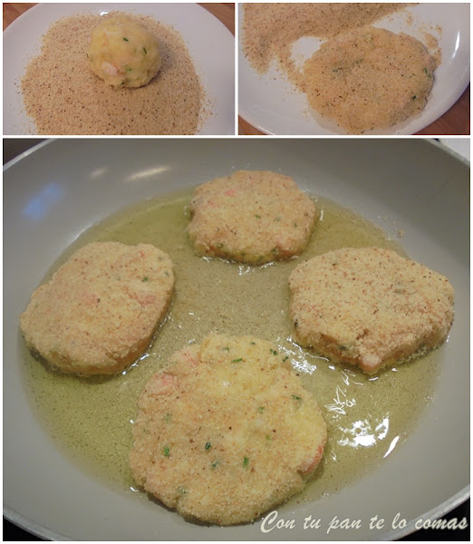 5. Calentamos un poco de aceite en una sartén y las freimos hasta que tengan un bonito color dorado. Mejor usar una espátula o espumadera para darles la vuelta porque son bastante blanditas y se pueden romper.