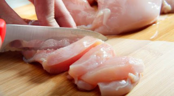 A continuación picamos el pollo en la picadora eléctrica.