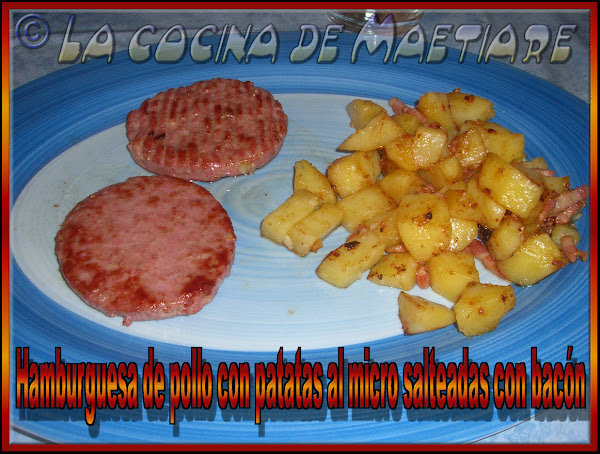 Pelar las patatas y cortarlas en cubos no muy grandes. Colocar en un recipiente apto para el microondas con 2 cucharadas de agua , taparlo y cocinarlo en el microondas a 800 w, hasta que la patata esté cocida.