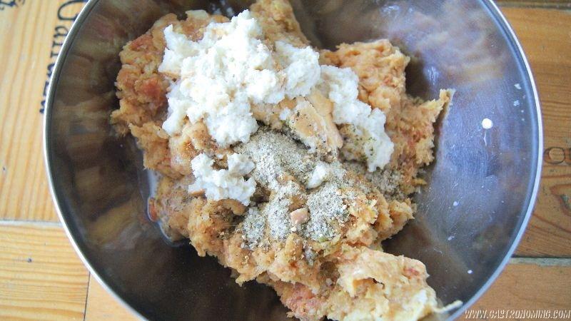 4. Una vez triturados, los mezclamos con el resto de especias y se lo añadimos a la carne. Mezclamos bien y empezamos a hacer bolas de unos 70 gramos aproximadamente, hazlo siempre humedeciéndote las manos, esto te facilitará el trabajo.