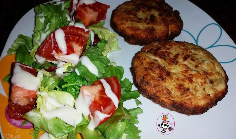 Hoy unas ricas hamburguesas de pollo, acompañada de una ensaladita con salsa césar... Te animas a preparar la receta?? :)
