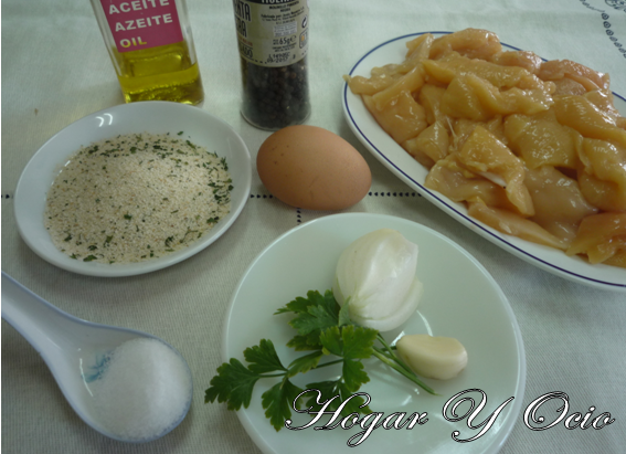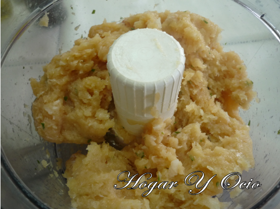 1. En un robot de cocina picamos el pollo, la cebolla, el diente de ajo y el perejil.