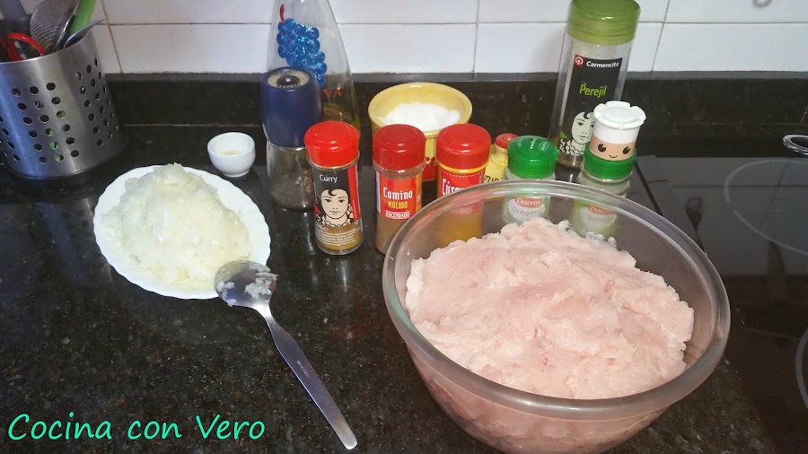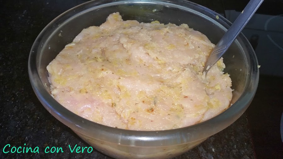 - Pechugas de Pollo 1 bandeja familiar limpiadas de grasa y picadas en la picadora, de modo que no queden trozos grandes.
