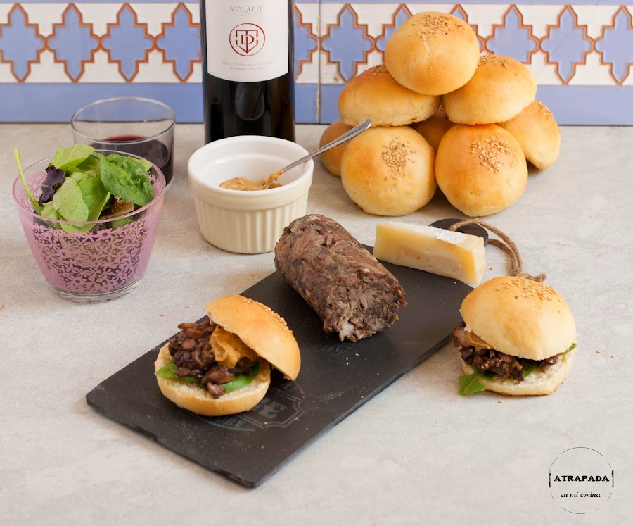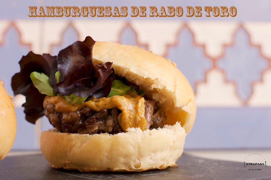 Lo mejor de ir a comer fuera de casa es que te vienes con ideas nuevas para el blog. Y sabía que no me iba a demorar mucho en preparar estas hamburguesas de rabo de toro (rabo de ternera, hablando con propiedad) que probé en la Taberna El Volapié hace unas semanas. Bueno, he intentado recrearlas, incluso con la salsa de queso Payoyo que llevaban aquellas. Quizás no he conseguido el mismo sabor en cuanto a la hamburguesa pero la salsa sí que se parece. Sin ser como las auténticas me han parecido simplemente exquisitas, y es que no nos hemos podido resistir a estos bollitos caseros, a esa crema de queso y a esas hamburguesas tan ricas. Y además como me traje una botella del tinto Volapié pues he aprovechado la ocasión para abrirlo y acompañar las mini hamburguesas. La receta de las hamburguesas es de Sergio Fernández, cocinero de Canal Cocina, que además veranea en Salobreña, por lo que aquí siempre lo tenemos muy presente.