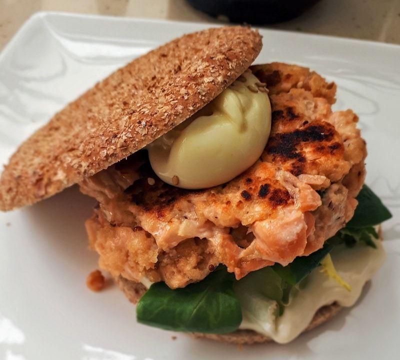 Os dejamos la receta que hemos preparado y que ha quedado estupenda.Hamburguesas de salmón con mahonesa de wasabi