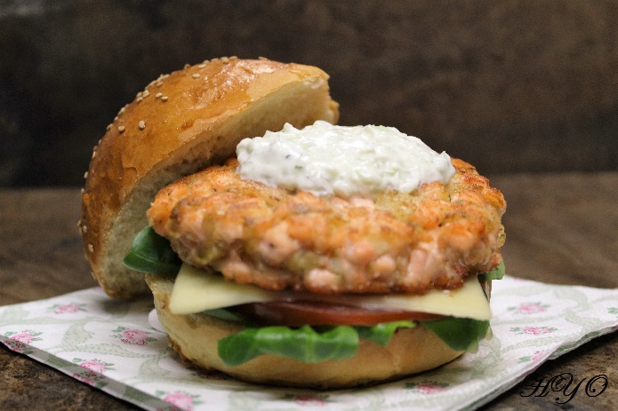 La preparación de las hamburguesas es sencilla, salvo quitar la piel al pescado y las espinas. Si no tenéis práctica es mejor pedir que os retiren la piel en la pescadería, ahorra mucho trabajo y tiempo. Y para quitar las espinas, armaos de paciencia, es lo único que puedo decir... Lo demás es cuestión de picar el salmón con ayuda de un cuchillo bien afilado, mezclar con el resto de ingredientes y freír. A la hora de montar las hamburguesas podéis utilizar panecillos caseros, y si añadís un poco de salsa tzatziki como he hecho yo, tendrán un toque frescura insuperable. Animaos con la receta y veréis que rica.