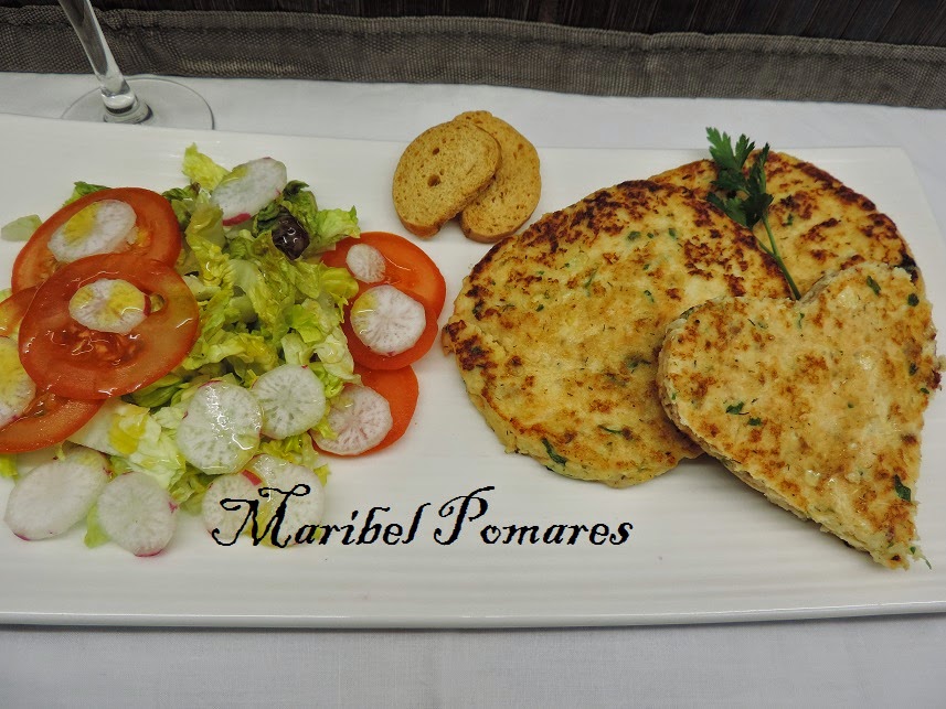 Lo ponemos en el plato de servir y acompañamos con lechuga, tomate y rábano.