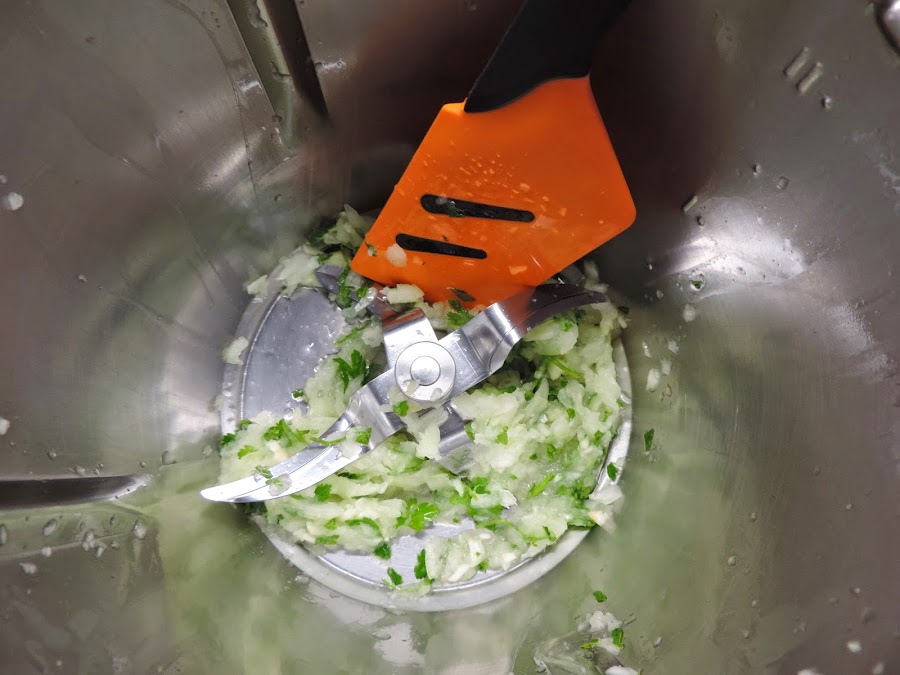 Mezclamos 10 segundos, velocidad 4, si nos queda muy blando podemos añadir 1 cucharada de pan rallado.