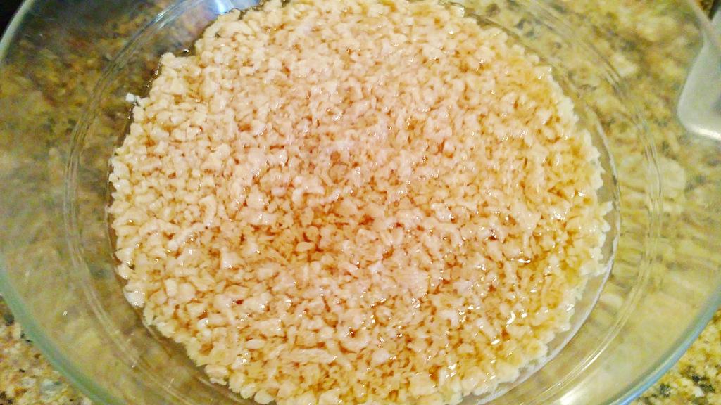 Si la dejamos en remojo unos minutos queda como carne picada y la podemos utilizar para los espaguetis, albóndigas, croquetas y hamburguesas vegetales.