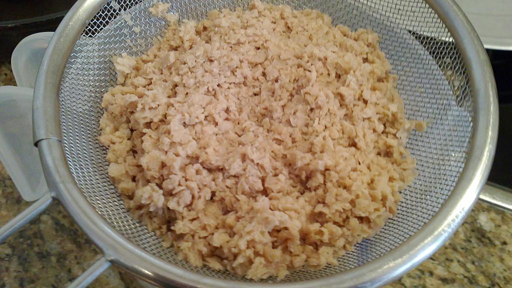 La pasamos a un colador y dejamos escurrir muy, muy bien presionando: