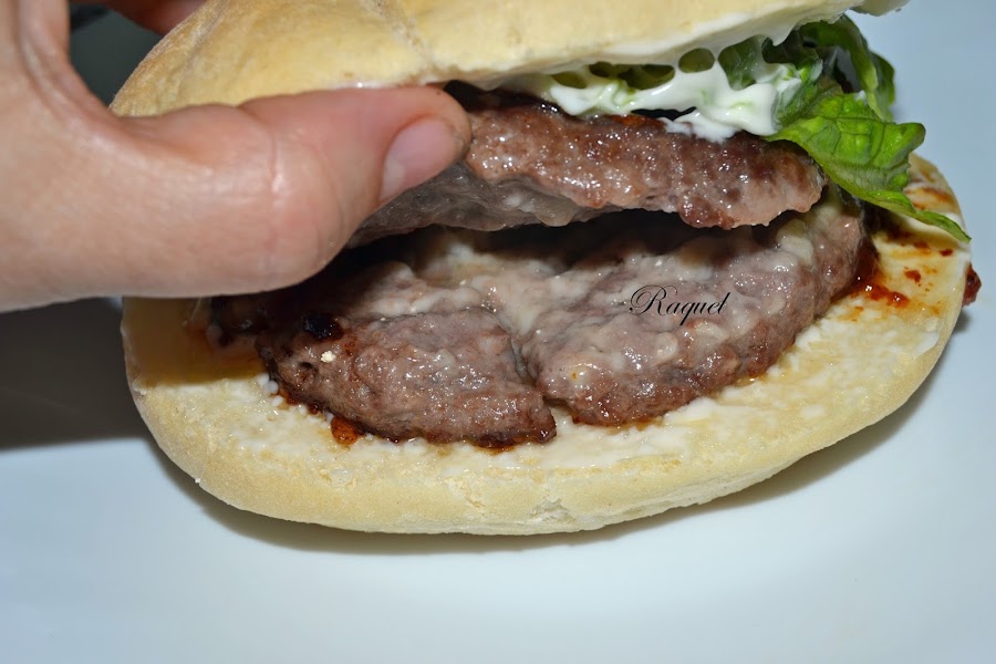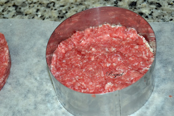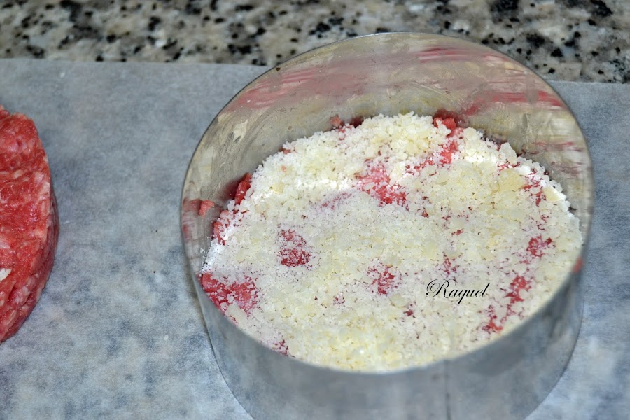 Mejor hablemos de la receta de hoy, el otro día compre carne de ternera, pedí que me la picasen en la carnicería y me puse a preparar hamburguesas, me apeteció rellenas de queso así que hice estas con parmesano y otras con roquefort que otro día os enseñare.