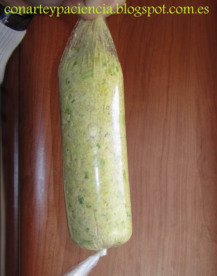 Hacemos un nudo a cada extremo. Metemos al congelador unas tres horas como mínimo y cortamos. En este momento pueden seguir en el congelador o cocinarlas con un poco de aceite de oliva.