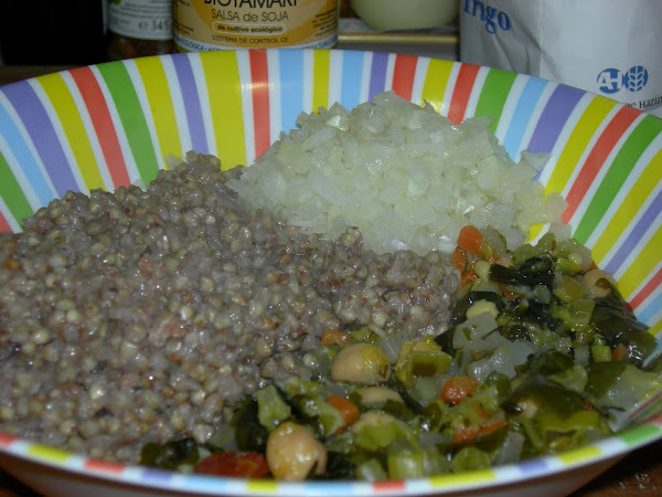 100g de vegetales cocidos, o alubias cocidas o.... (Yo he usado sobras de un caldo vegetal con garbanzos, lleva bastantes cosillas y quería aprovechar)