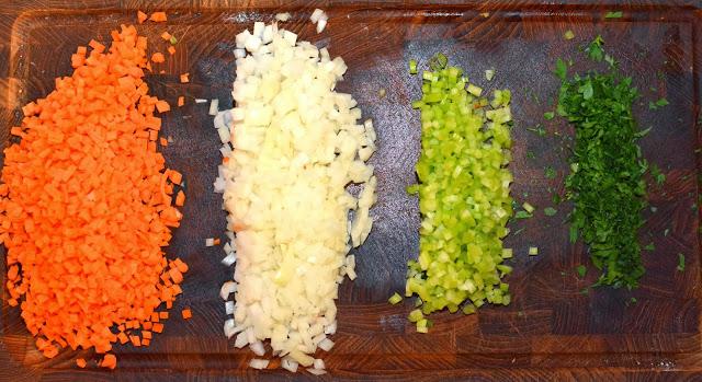 4. Picamos la zanahoria, las cebollas, el apio y el perejil.
