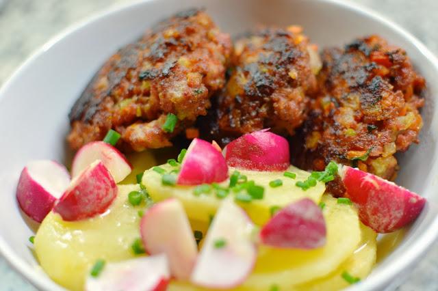 The post Hamburguesas horneadas con ensalada de patatas y rabanitos appeared first on Tosca de la Mota - Recetas.