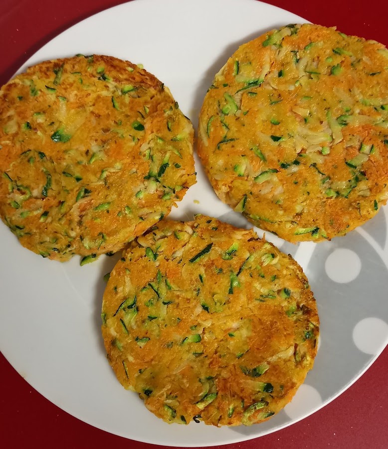 Rallamos el calabacin y las zanahorias y con la ayuda de un colador fino le quitamos el exceso de agua que tienen.