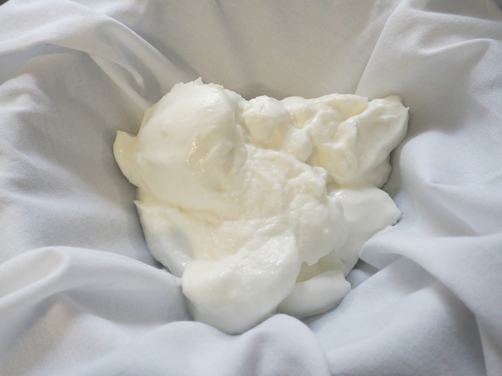 - Ponemos el yogur en una tela o colador y lo dejamos escurriendo unas horas para que suelte todo el suero y quede compacto. Al menos 4 o 5 horas.