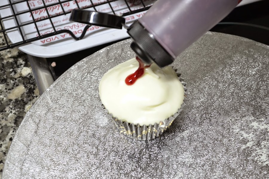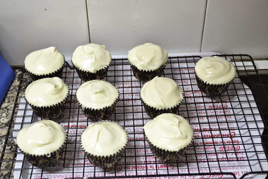 Como los míos eran de Red Velvet preparé un frosting de queso, que esta para chuparse los dedos...