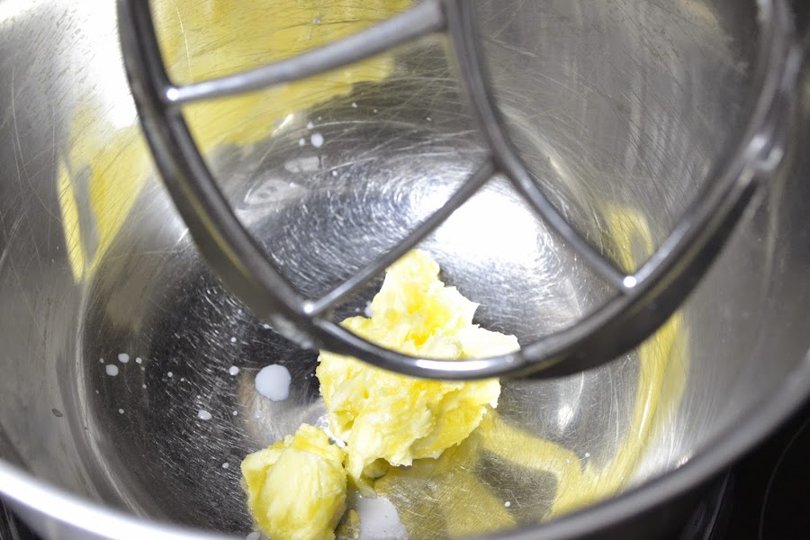 Primero empieza batiendo 145 gramos de mantequilla a temperatura ambiente, mezcla bien hasta que veas que su color se aclara.