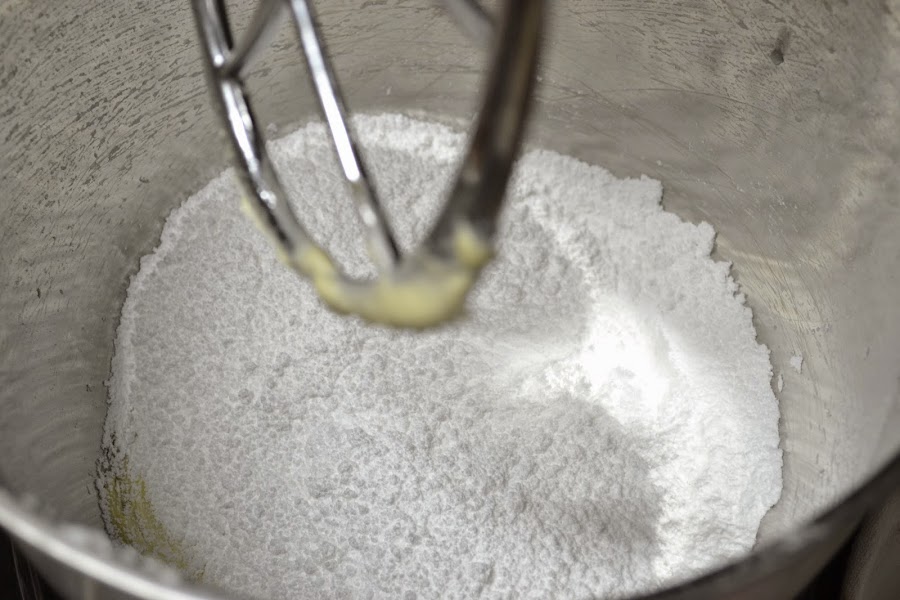Luego ve agregando poco a poco 400 gramos de azucar glass previamente tamizado. Bate a velocidad alta hasta que se integren los ingredientes.