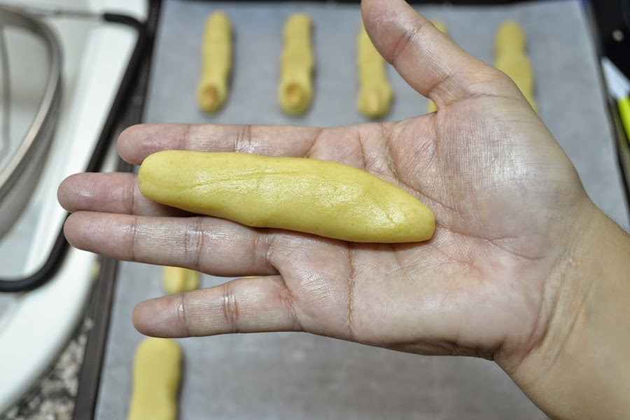 Te recomiendo que no las hagas muy gruesas, yo cometí ese error, porque en el horno se crecen y a mi me quedaron unos dedos gordos jajajaja.. también recuerda que antes de meterlos al horno tienen que estar unos 20 minutos al horno para que las galletas no se le hagan grietas.