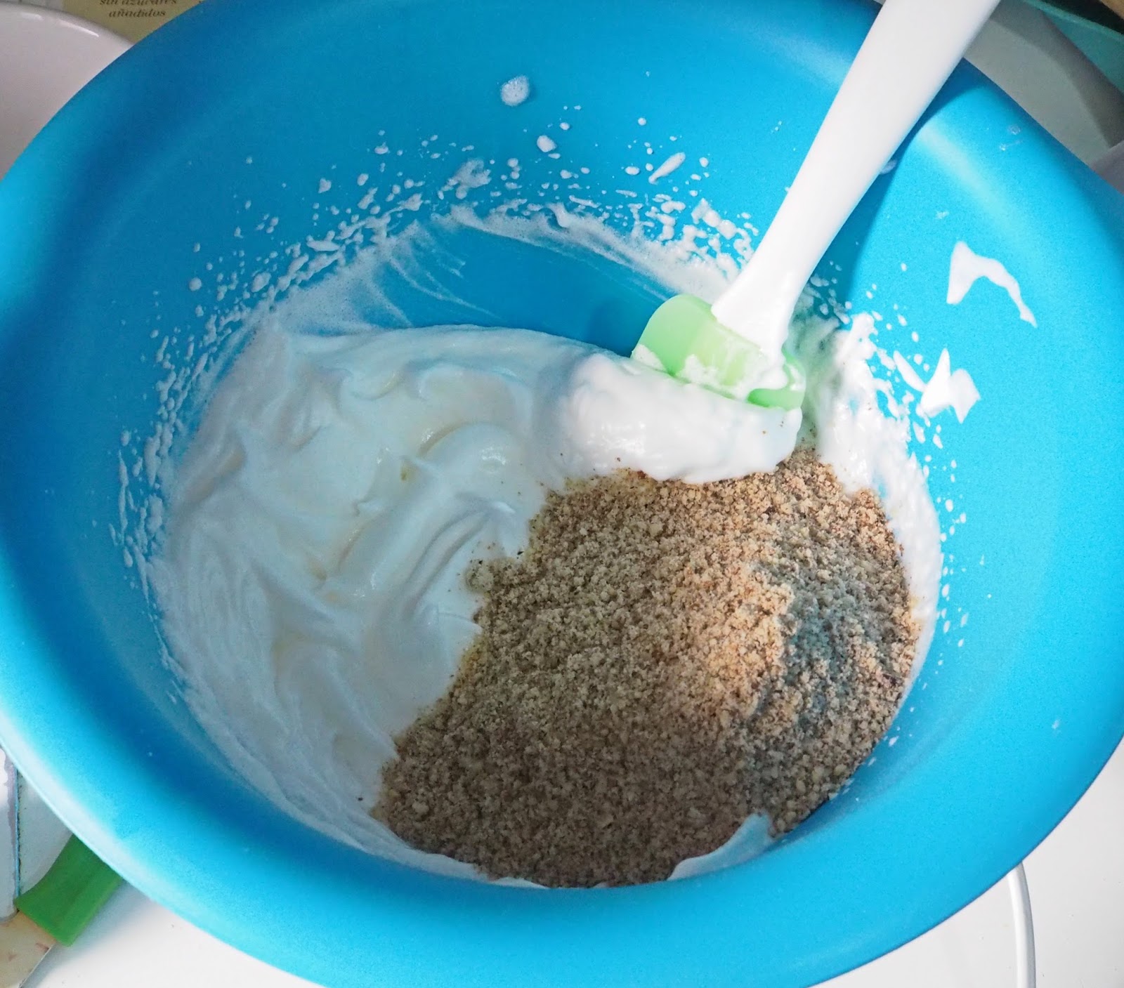 - Añadimos ahora la almendra y la canela y mezclamos con cuidado, con movimientos circulares suaves hasta obtener una masa homogénea.
