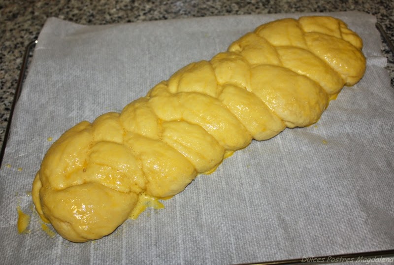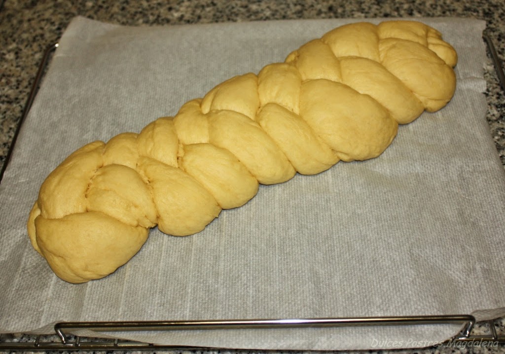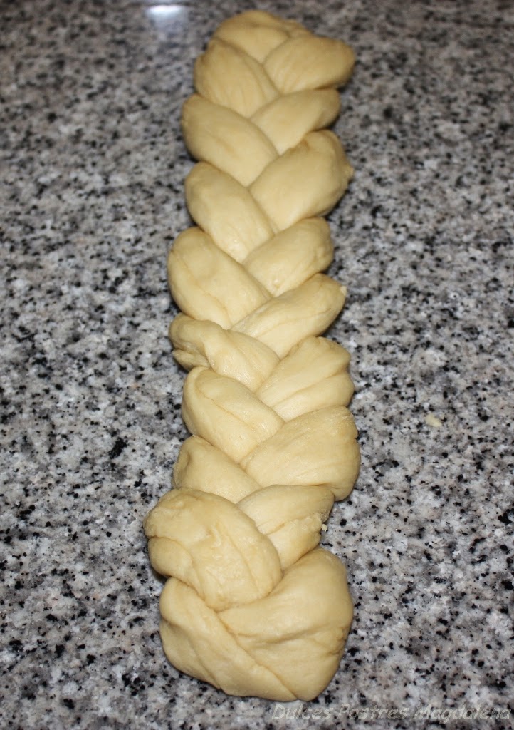 Y el postre elegido por mí para esta ocasión ha sido: Hefezopf, es un pan dulce, muy parecido al brioche, en forma de trenza.