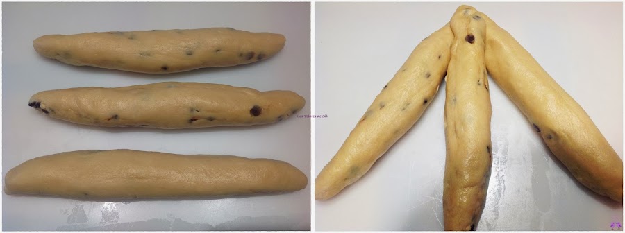 Pasado el tiempo de levado, divide la masa en 3 trozos y forma una trenza.