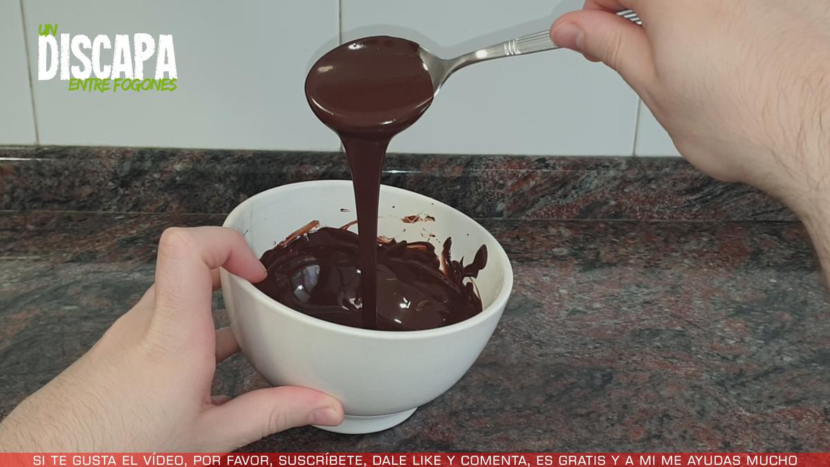 2Cuando ya tenemos los plátanos congelados, procedemos a derretir el chocolate, yo estoy usando un chocolate con un 85% de cacao y lo voy a derretir en el microondas en tandas de unos 15 o 20 segundos.
