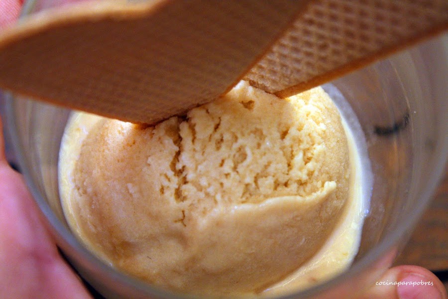 Si no disponemos de heladera pasadas dos horas desde que metemos el helado en el congelador, repetimos este paso a la hora y de nuevo a la media hora. Con esto evitamos que cristalice, obteniendo así una textura mas suave.