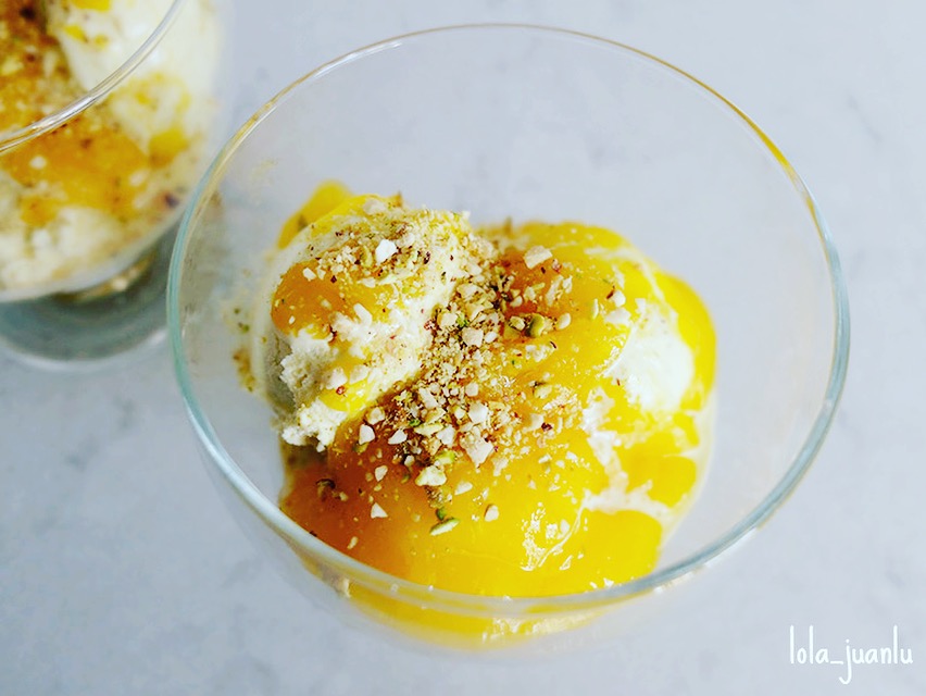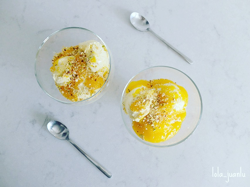 Pero este año, lo tengo un poco más complicado con la llegada de Mon Petit Chloé, así que lo que voy a hacer es preparar una deliciosa copa de helado con mango y pistacho.