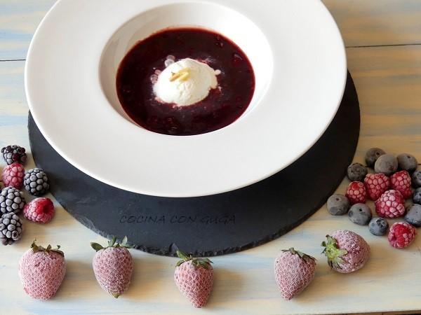 Helado casero de yogur griego sin heladera y sopa de frutos rojos